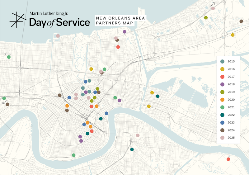 Since 2015, we’ve partnered with incredible organizations and community leaders through our annual Day of Service, an initiative rooted in collaboration, care, and design for the public good. Over the years, these efforts have supported a wide range of impactful projects across our communities. To celebrate the legacy and growth of this program, we invite you to explore a brief history of its evolution and the people who have helped bring it to life.