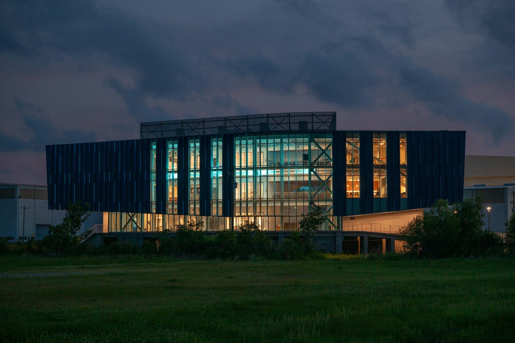 From the beginning, the client team was clear in their desire for an expressive, exciting architectural solution—they did not want a “research shed.” The client wanted it to "feel like science alive." The design team simultaneously recognized that the project should serve as a “billboard” for the organization, providing a signal to the public from the moment one arrives on campus of the exciting and important work being done within. Cognizant of flooding, an immediate design need involved raising the building, ultimately elevating it 13' above grade.