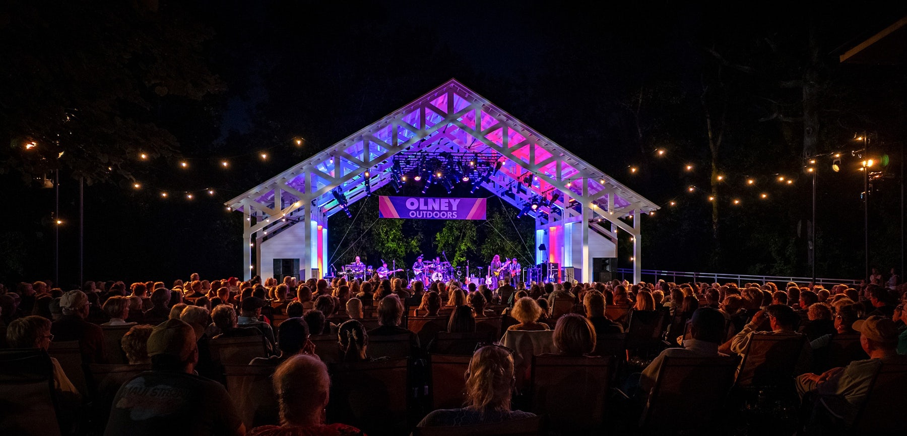 The Root Family Stage at Omi’s Pavilion is a flexible open-air performance venue that allowed Olney Theatre Center to continue serving its community during the pandemic, transforming the landscape into a resilient, year-round setting for performance and gathering.